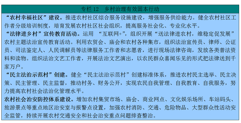 13。精确聚焦阶段使命。正在全面建成小康社会决胜期,沉点抓好防备化解严沉风险、精准脱贫、污染防治三大攻坚和,加速补齐农业现代化短腿和村落扶植短板。正在全面扶植社会从义现代化国度新征程期间,沉点加速城乡融合成长轨制设想和政策立异,鞭策城乡公共资本平衡设置装备摆设和根基公共办事均等化,推进村落管理系统和管理能力现代化,全面提拔农人风貌。