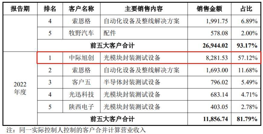 演讲期内,猎奇智能向前五大客户的发卖收入占停业收入的比沉别离为81。79%、82。83%和79。38%,客户集中度较高,此中对中际旭创的发卖收入占比别离为57。12%、62。19%、58。85%和65。55%。