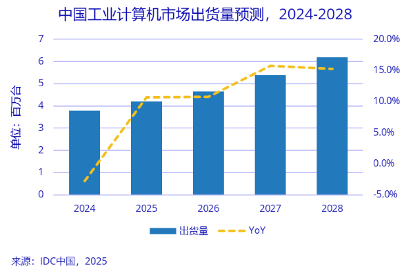 据国际数据公司(IDC)最新预测,中国工业计较机市场将正在2025年沉回高速增加轨道,到2028年出货量无望达到619万台,五年复合增加率将达9。7%。这一数据标记着?。